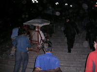Kathy in a sedan chair on the steps at Fengjie dock |